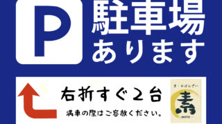 当店専用駐車場を2台分確保できました。場所は当店南側、服屋さんを入ったところです。「京・おばんざい素 お客様駐車場」と書かれた札がありますのでそちらにお願いいたします。