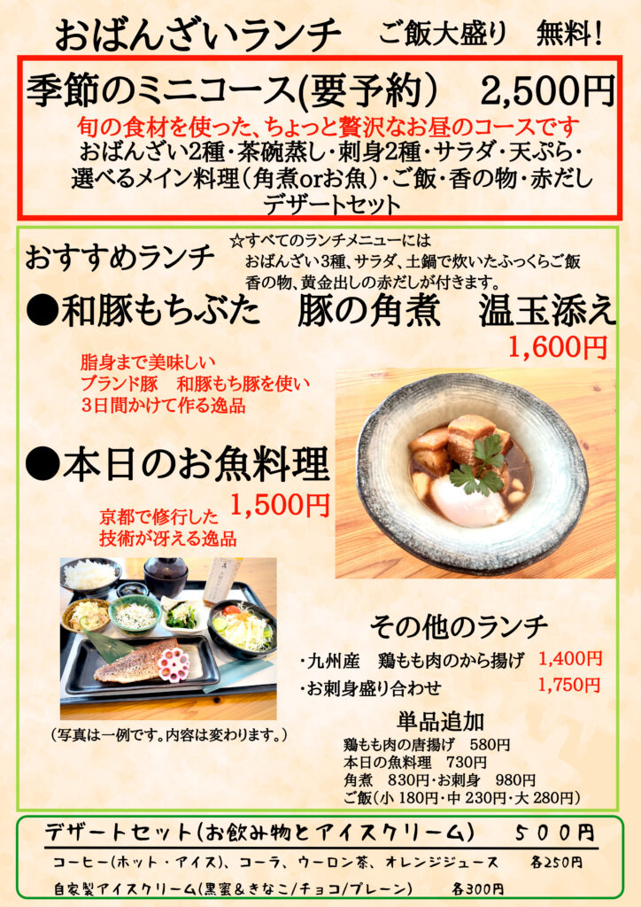 ランチメニューを下記のものに変更させていただきます。